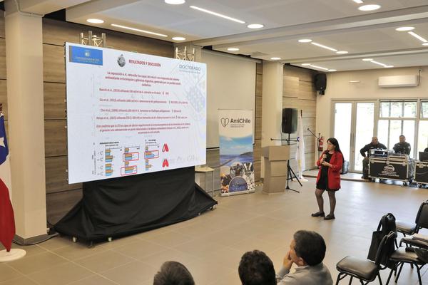 La Dra. María Angélica Larraín expuso “Estudio del fundamento técnico de la exigencia de la Unión Económica Euroasiática (UEE) sobre temperatura máxima en la cadena de transporte de moluscos”, vinculada al área de procesos y calidad.