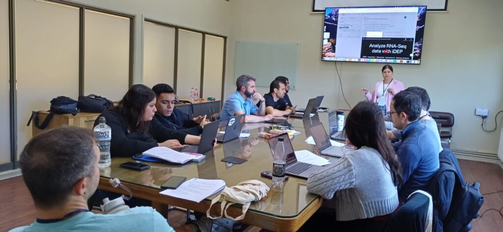 Posteriormente, la Dra. Yeny Leal, guió el Genomic Boot Camp, «Herramientas de Visualización NGS». El trabajo se realizó utilizando Idep (Integrated Differential Expression and Pathway Analysis), un servidor web que integra control de calidad, análisis estadístico, visualización avanzada y análisis funcional dentro de un mismo entorno. Adicionalmente se empleó ShinyGO, una plataforma web interactiva especializada en análisis de enriquecimiento funcional, que permite explorar ontologías GO, rutas KEGG y redes funcionales a partir de listas de genes. “El uso complementario de Idep y ShinyGO permite comparar estrategias de análisis funcional y reforzar la interpretación biológica de los resultados transcriptómicos”, expreso la Dra. Leal.