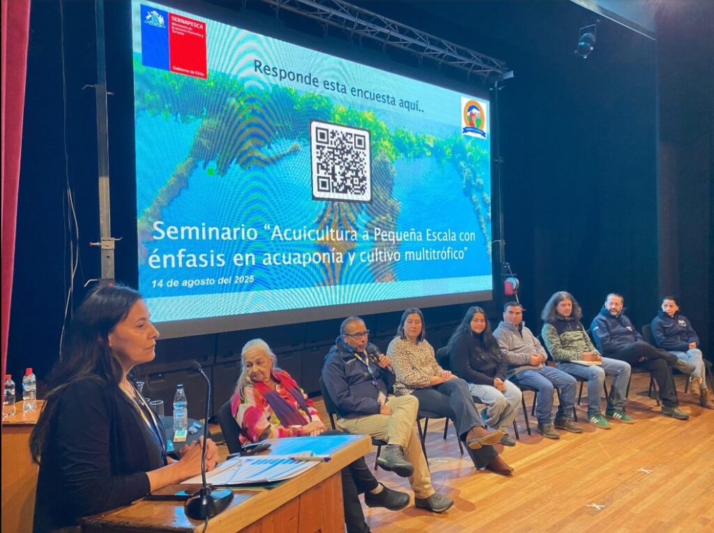Entre las exposiciones, desde Sernapesca se abordó las consideraciones sectoriales y normativas en la acuicultura a pequeña escala, entregando una mirada técnica y estratégica sobre los desafíos y oportunidades de este sector productivo.